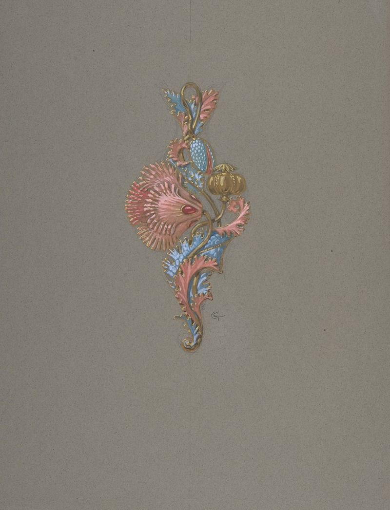This particular work is a testament to Grasset's skill as a designer and his ability to merge artistic creativity with practical application. While the pendant design may not have been realized as an actual piece of jewelry, it remains an important example of his contribution to the decorative arts and his role in the development of Art Nouveau.