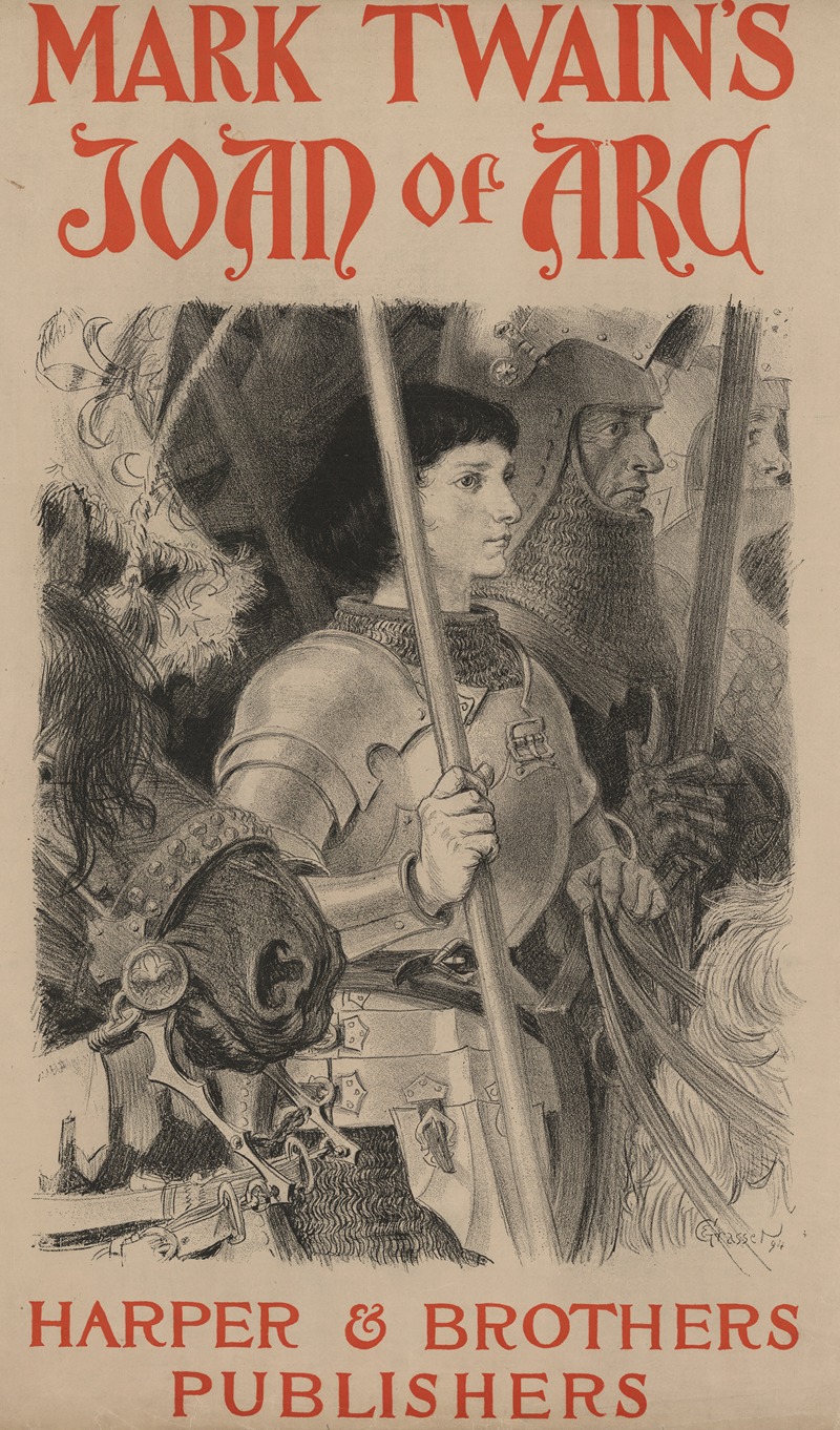 Grasset’s illustration for the book captures the spirit of Joan of Arc as a heroic and saintly figure. While specific details about the individual artwork are scarce, Grasset’s style typically incorporates medieval motifs, rich ornamentation, and a sense of narrative drama. His work often reflects an interest in historical and religious themes, making him a fitting choice to illustrate Twain’s novel about the French heroine and saint.