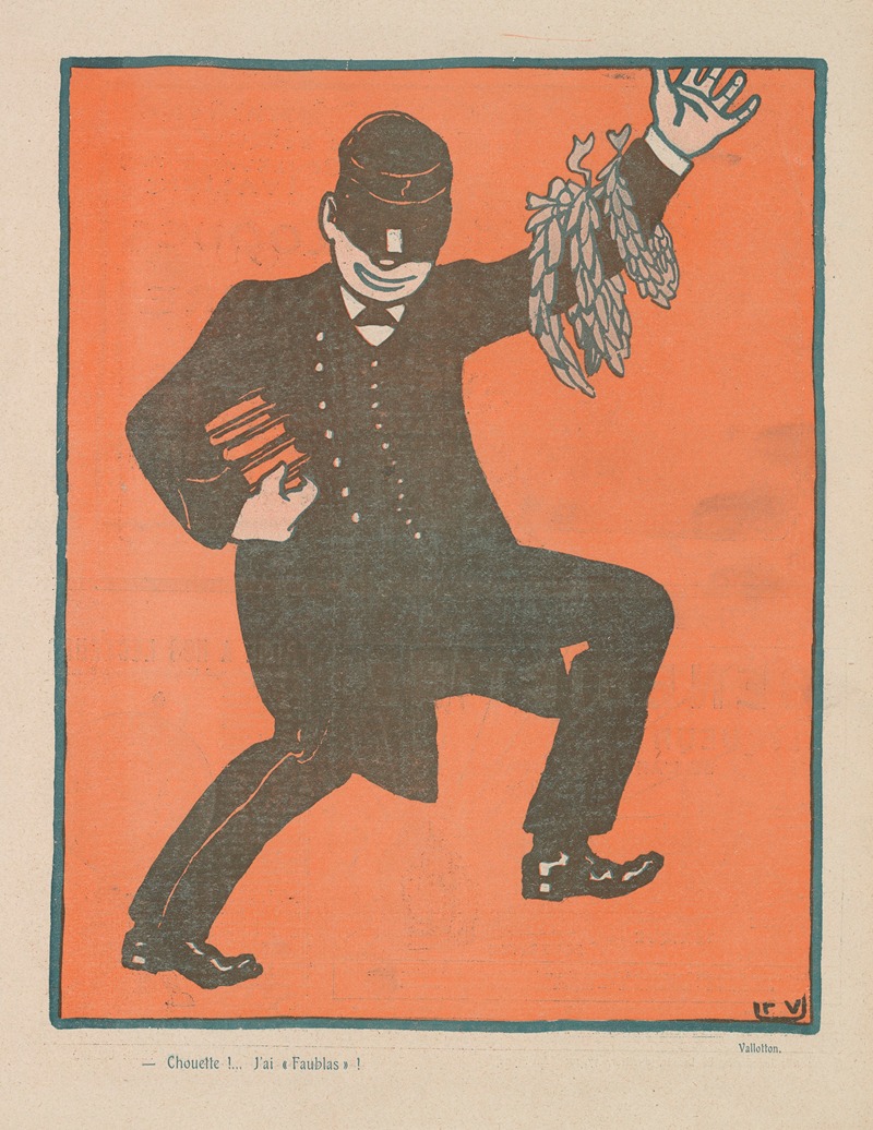 "Choutte!..J’ai Faublas" is one of Vallotton's works that reflects his interest in literature and the interplay between text and image. The title itself is a reference to "Faublas," a character from the 18th-century novel "Les Aventures du Chevalier de Faublas" by Jean-Baptiste Louvet de Couvrai. This novel was known for its adventurous and romantic themes, and it was quite popular in its time for its exploration of social and moral issues.
