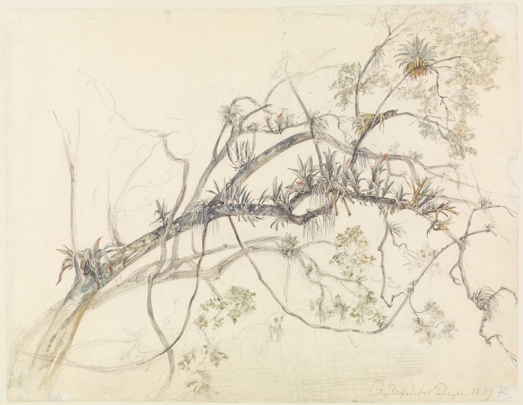 Throughout his career, Ferdinand Keller remained committed to exploring themes of nature and history. His works are celebrated for their artistic merit and their ability to capture the essence of the subjects he portrayed. "Aststudie mit Schlinggewächsen am Ufer des Parahyba" is a fine example of Keller's dedication to his craft and his passion for depicting the natural landscape.