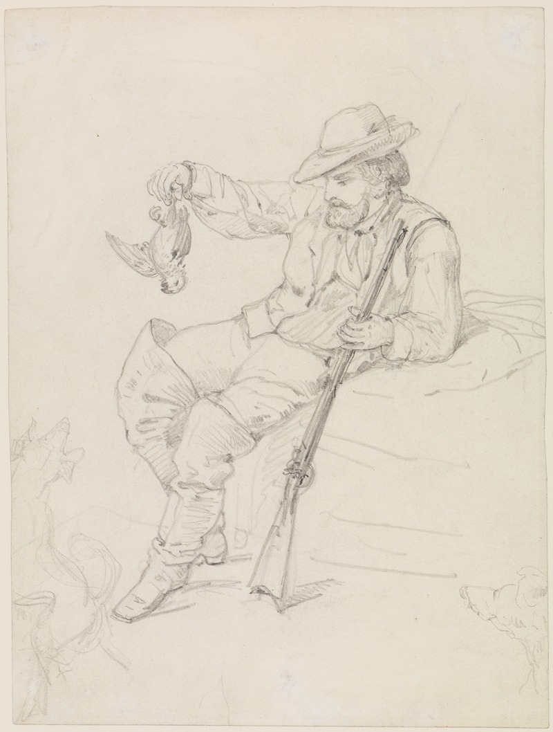 "Sitzender Jäger, einen erlegten Vogel haltend" is a testament to Keller's ability to convey narrative through visual art. The painting invites viewers to contemplate the moment captured, the skill of the hunter, and the serene yet dynamic interaction between man and nature. It remains a significant example of Keller's contribution to 19th-century German art, demonstrating his technical prowess and his capacity to infuse everyday scenes with deeper meaning and emotion.
