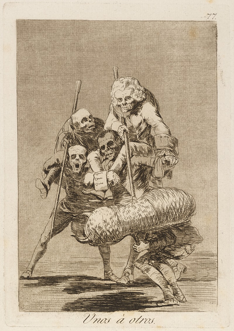 Overall, "Unos á otros" is a poignant and powerful work that captures the senseless violence and suffering of war. It is a testament to Goya's skill as an artist and his ability to convey deep and complex emotions through his work. The painting remains a significant and moving piece in the history of art, reflecting the enduring impact of Goya's vision and his commitment to depicting the truth of human experience.
