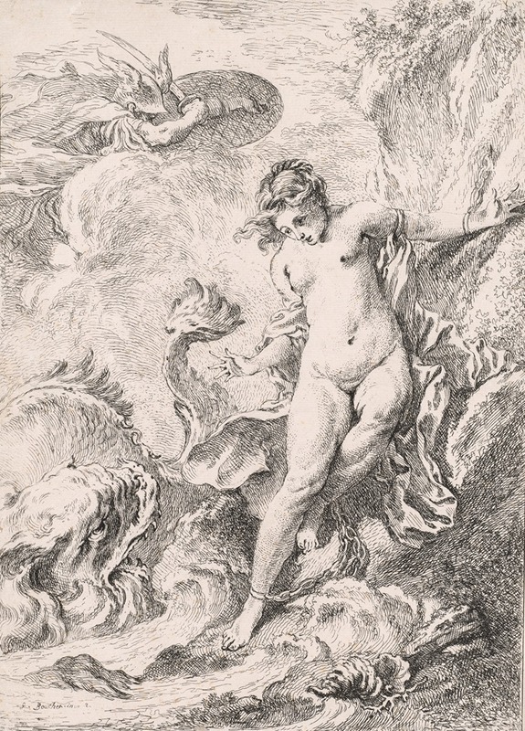 Boucher's treatment of the mythological subject reflects the 18th-century French taste for romantic and idyllic themes, often infused with a sense of playfulness and eroticism. His portrayal of Andromeda is both idealized and sensual, aligning with the Rococo aesthetic that favored lightness, elegance, and an emphasis on beauty.