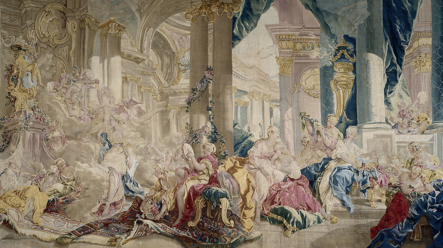 Psyché conduite par Zéphyr dans le palais de l’Amour. Psyché montrant ses richesses à ses soeurs
