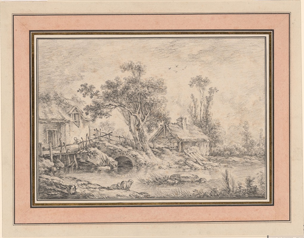 While "Thatched Mill Cottage and Shed with Two Trees at the Edge of a Stream" may not be as widely recognized as some of Boucher's other works, it remains an important example of his contribution to landscape painting. It reflects the Rococo aesthetic's emphasis on beauty, elegance, and the idealization of nature, and it showcases Boucher's exceptional talent in capturing the essence of the French countryside.