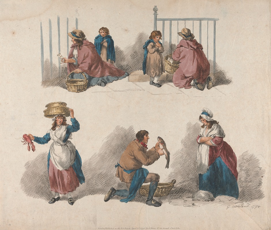 In summary, "Five Studies of Peddlers" by George Morland is a significant work that captures the essence of itinerant vendors in 18th-century England. Through detailed and expressive studies, Morland offers a window into the daily lives and trades of these individuals, highlighting their role in the broader social and economic landscape.