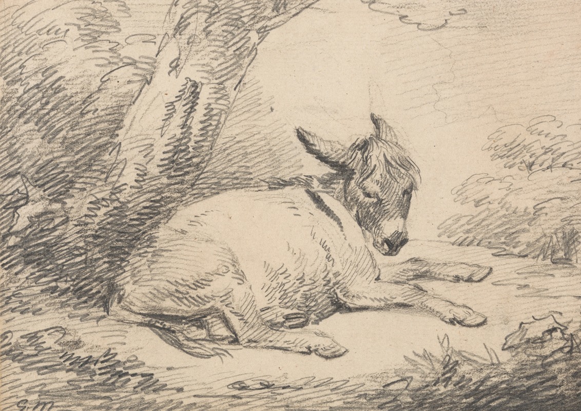 George Morland was an English painter known for his rustic and pastoral scenes, often depicting rural life and animals. "Study of a Donkey Under a Tree" is one of his works that exemplifies his skill in capturing the essence of the countryside and its inhabitants. Morland was born in London in 1763 and was the son of the artist Henry Robert Morland. He showed an early aptitude for art, and by the age of ten, he was already exhibiting his work. Throughout his career, Morland became known for his ability to portray animals with a sense of realism and character, which is evident in this particular study.