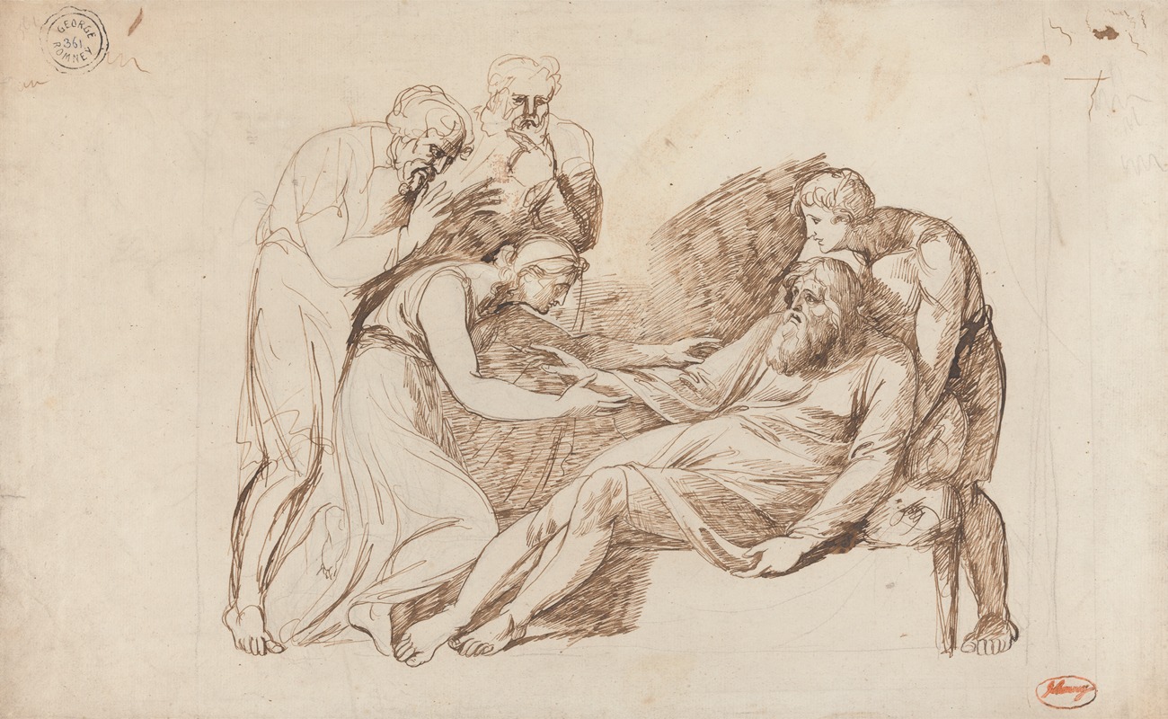 George Romney's painting Lear Awakened by Cordelia is a work of art inspired by William Shakespeare's tragedy King Lear. Created by Romney, a prominent English portrait and historical painter of the 18th century, the painting depicts a poignant moment from the play. In this scene, King Lear, who has been driven to madness and despair, is tenderly cared for by his youngest daughter, Cordelia. This moment symbolizes reconciliation and the enduring bond between father and daughter, even amidst tragedy.