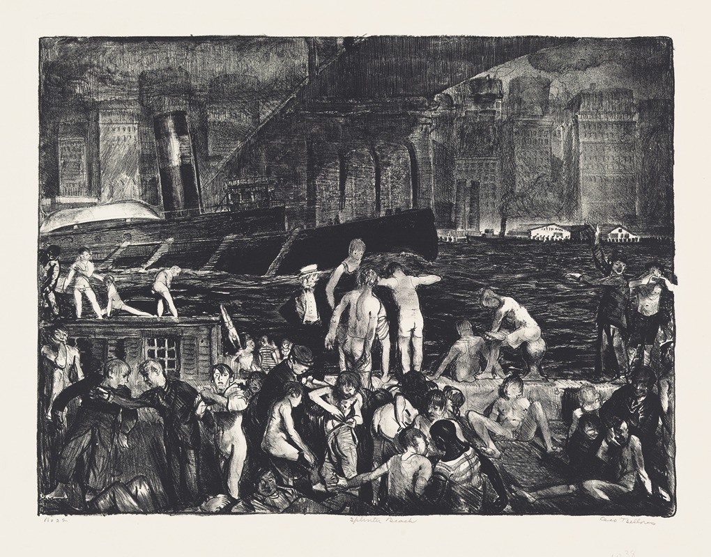 "Splinter Beach" is part of Bellows' broader body of work that often explored themes of urban life and the human condition. His paintings frequently depicted scenes of New York City, including its tenements, docks, and recreational areas. This particular painting fits within that context, offering a glimpse into the recreational habits of city dwellers during that period.
