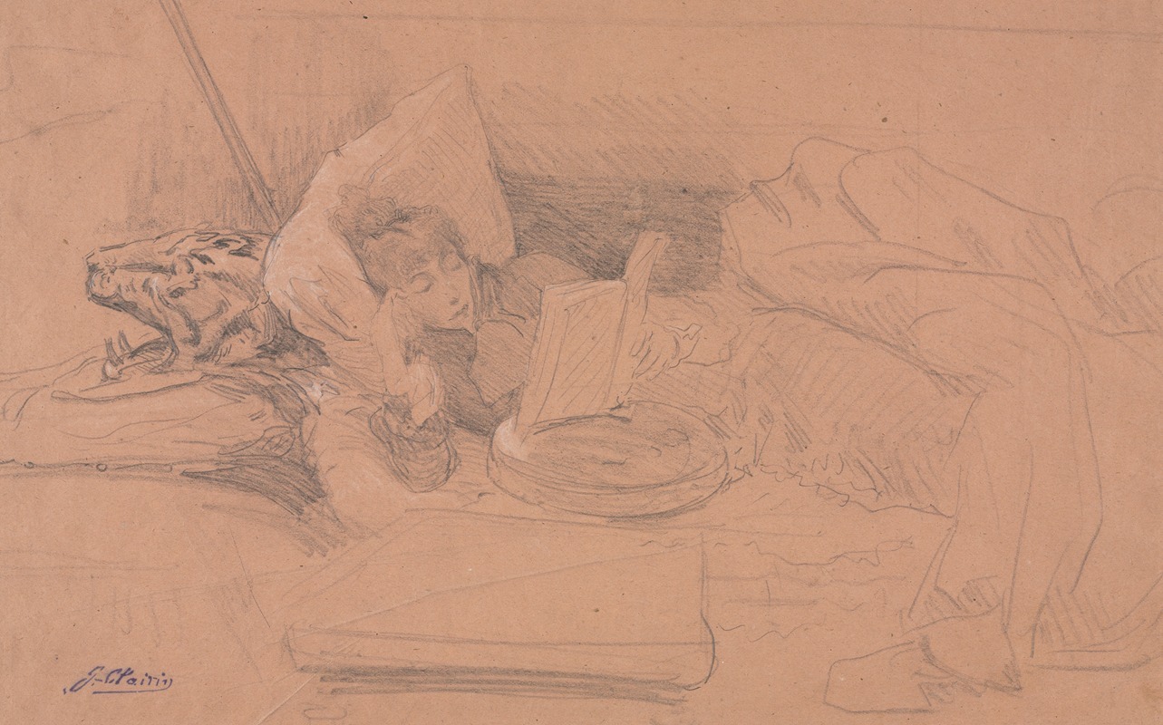 The painting is also significant for its reflection of the cultural and artistic milieu of the late 19th century. During this time, there was a growing interest in depicting celebrities and capturing the private lives of public figures. Clairin's work fits within this trend, offering viewers a glimpse into the personal world of one of the era's most celebrated actresses.