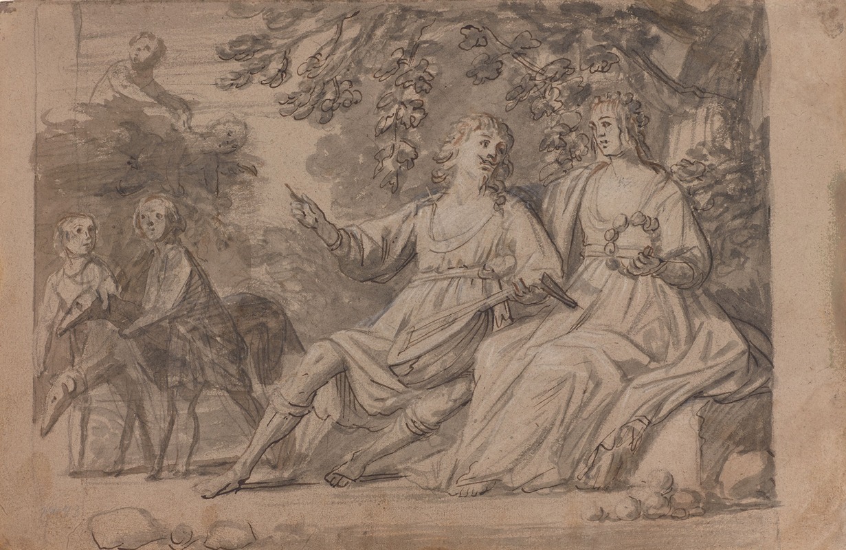 Pastoral scene of a man and a woman