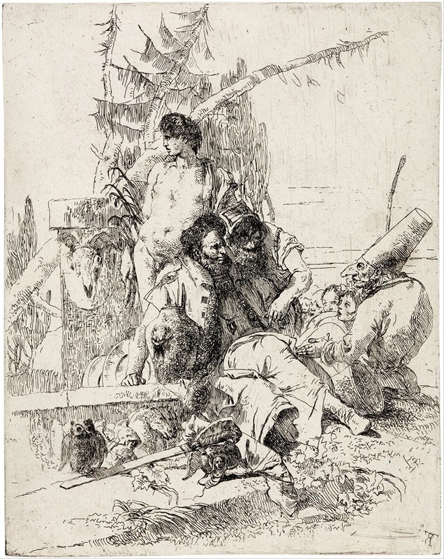 Giovanni Battista Tiepolo's painting Punchinello Gives Counsel is a work attributed to the renowned Venetian artist, who was active during the 18th century. Tiepolo is celebrated for his mastery of the Rococo style, characterized by its lightness, elegance, and use of vibrant colors. He is particularly known for his frescoes and paintings that often depict historical, mythological, or theatrical themes.