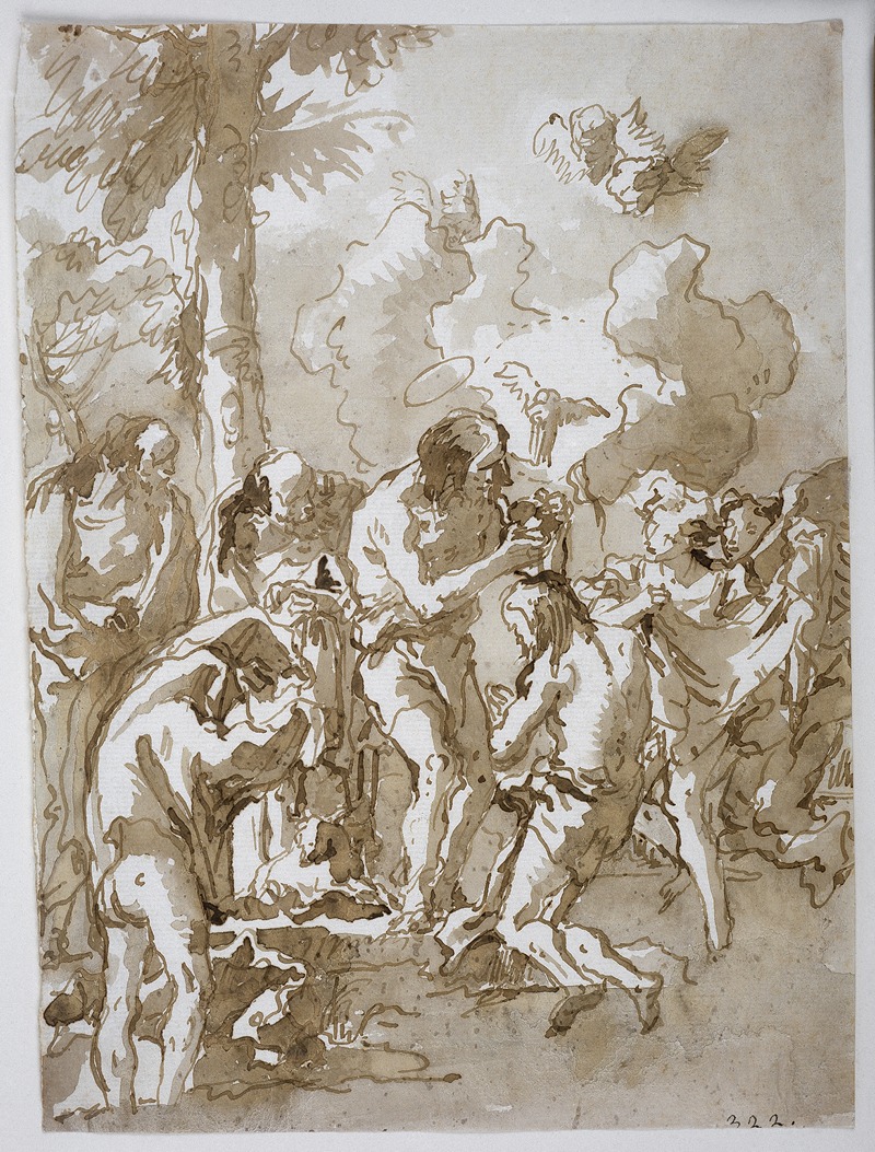 The painting is part of Domenico Tiepolo's broader body of work, which includes religious, mythological, and genre scenes. While his father often worked on grand frescoes and large-scale commissions, Domenico's oeuvre includes smaller, more intimate works that reflect his personal style and artistic vision. His approach to religious subjects often combines reverence with a sense of humanity, making the scenes relatable to viewers.