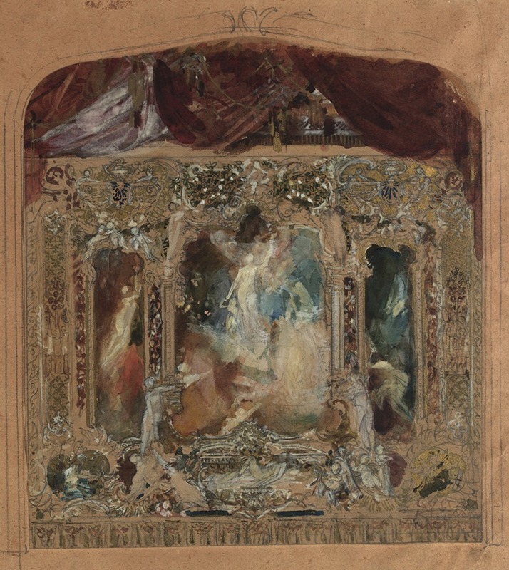 The artwork itself is a testament to Klimt's mastery of composition and his interest in integrating art into public spaces. While the final curtain design was intended to enhance the theatrical experience, it is unclear whether the project was fully realized or if the curtain was ever produced and installed in the theater. The preparatory design, however, remains an important example of Klimt's work in the applied arts and his contribution to the cultural landscape of the Austro-Hungarian Empire.