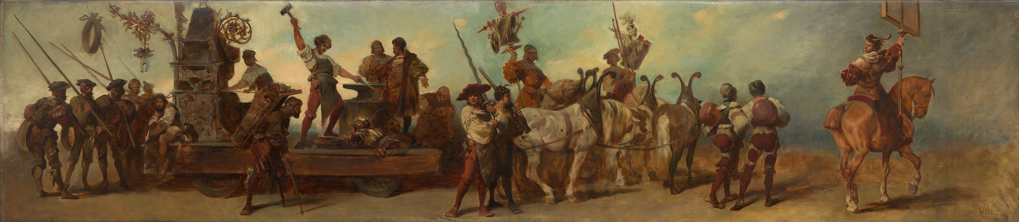 Hans Makart's work, including "Entwurf zum Festzug 1879 – Die Schmiede," remains an important part of art history, reflecting the tastes and values of the society in which he lived. His ability to capture the spirit of his time through his art has left a lasting legacy, and his works continue to be studied and admired for their technical skill and historical significance.