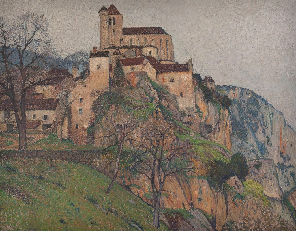 In summary, "Saint-Cirq-Lapopie" by Henri Martin is a testament to the artist's skill in portraying the serene beauty of the French countryside. Through his distinctive style and personal connection to the region, Martin created a work that not only captures the essence of a picturesque village but also reflects the broader themes of light, color, and nature that define his oeuvre.