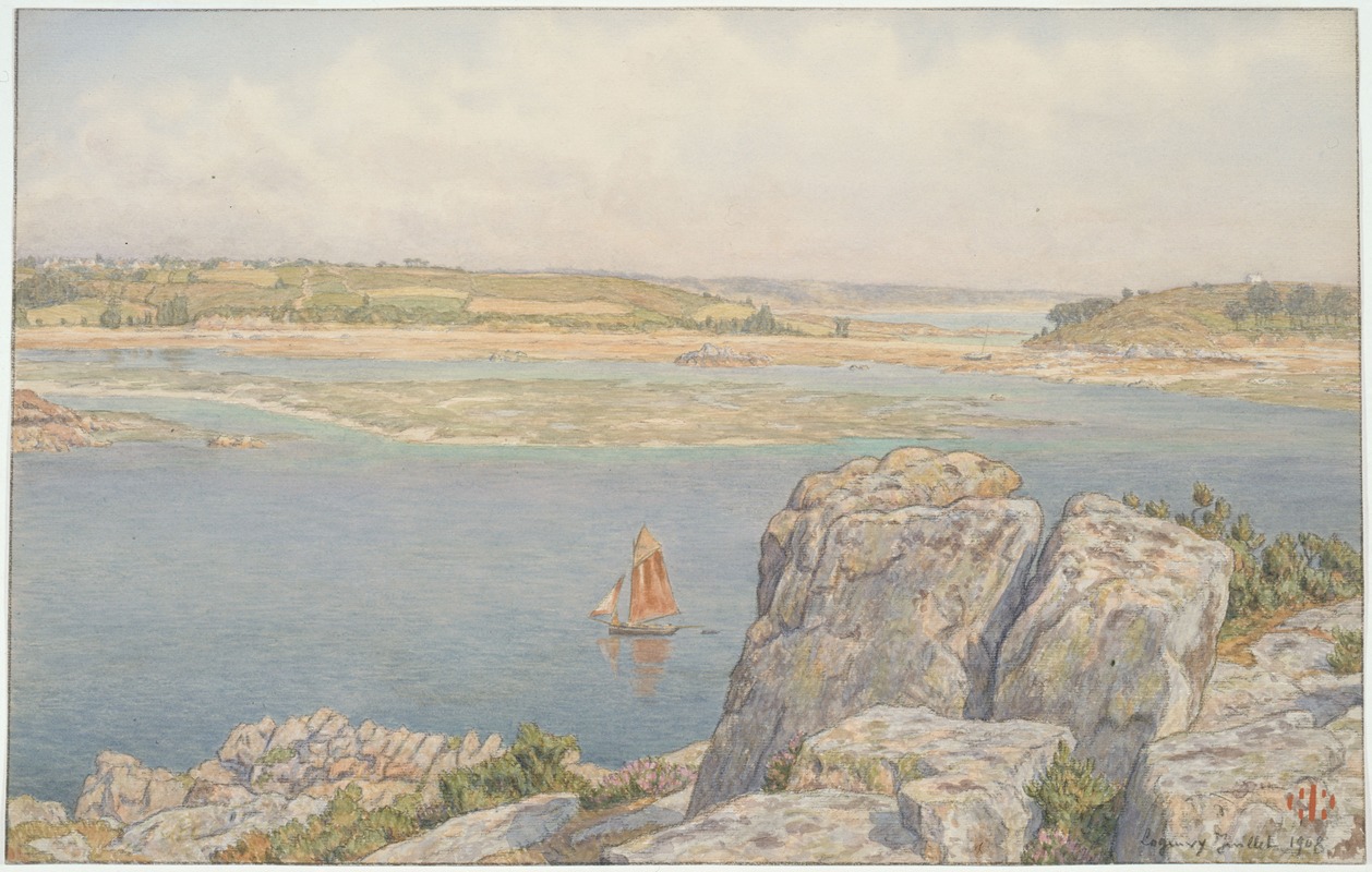 In "Embouchure du Trieux à l’île à Bois. Loguivy," Rivière captures the tranquil atmosphere of the estuary with a focus on the interplay between water and land. The composition likely features the calm waters of the Trieux River, the lush greenery of the Île à Bois, and possibly the quaint structures of Loguivy in the background. Rivière's technique involves delicate lines and a subtle gradation of colors, creating a sense of depth and tranquility.