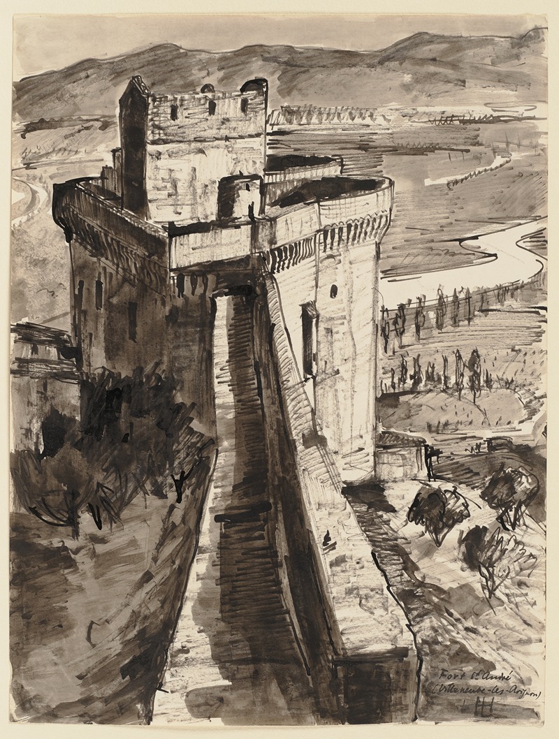 In summary, "Fort Saint-André in Villeneuve-les-Avignon" by Hermann Lismann is a significant piece that reflects the artist's engagement with historical architecture and his ability to convey the essence of a place through his distinctive artistic style. The painting serves as a bridge between the past and the present, capturing the enduring legacy of Fort Saint-André through the eyes of a modernist painter.