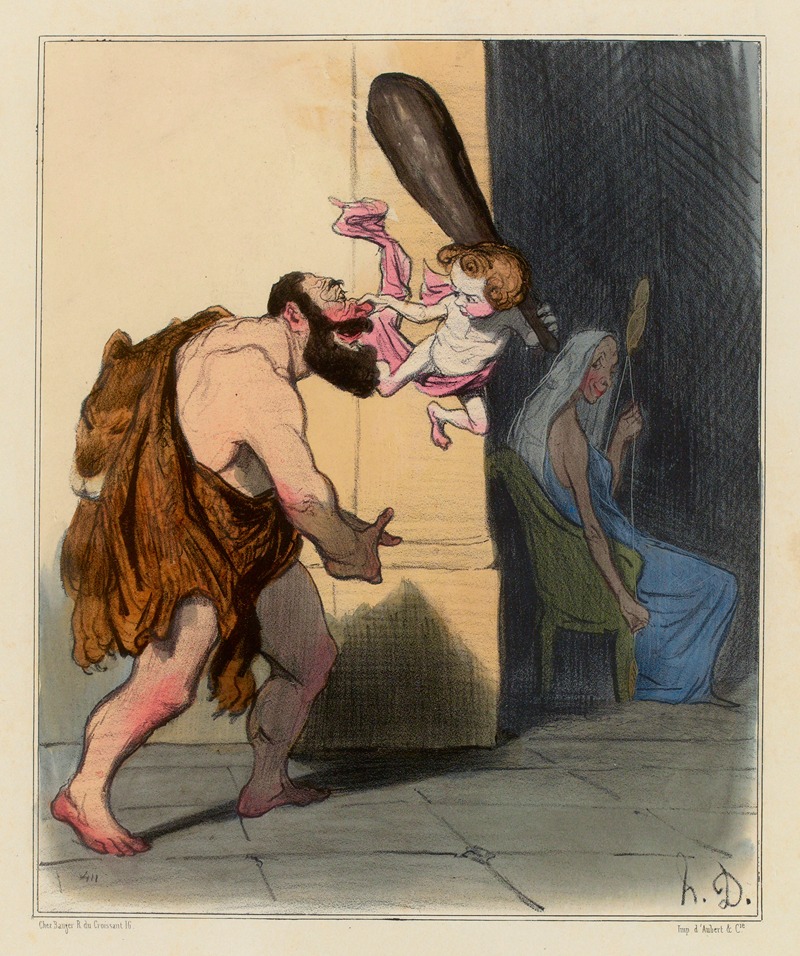 Daumier's interpretation of Hercules and Cupid serves as a reminder of the enduring relevance of classical mythology and its capacity to address timeless aspects of the human condition. Through his distinctive style and perspective, Daumier offers a fresh take on a well-known mythological narrative, blending humor, pathos, and artistic innovation.