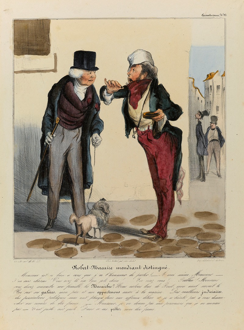 Overall, "Robert Macaire mendiant distingué" is a testament to Daumier's skill as an artist and his insightful observations of the world around him. Through the character of Robert Macaire, Daumier was able to explore themes of identity, morality, and the fluid nature of social status, making his work relevant not only in his own time but also in contemporary discussions of social dynamics.