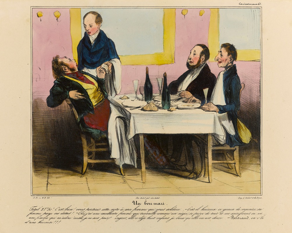 Honoré Daumier, a French artist renowned for his satirical lithographs and paintings, created the work titled Un bon mari (translated as "A Good Husband"). This painting is one of Daumier's many explorations of domestic life and human relationships, showcasing his keen observational skills and ability to capture the nuances of everyday existence. While Daumier is primarily celebrated for his political and social caricatures, his paintings often delve into more intimate and personal themes, as seen in Un bon mari.