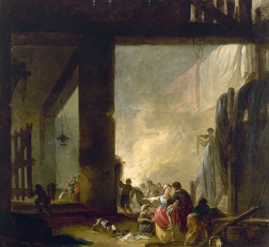 Overall, "La Blanchisserie" exemplifies Robert's skill in blending the ordinary with the extraordinary, creating a scene that is both a snapshot of 18th-century life and a testament to his artistic vision. Through this painting, viewers are invited to appreciate the beauty and complexity of everyday life, set against the backdrop of history and architecture that Robert so masterfully rendered.