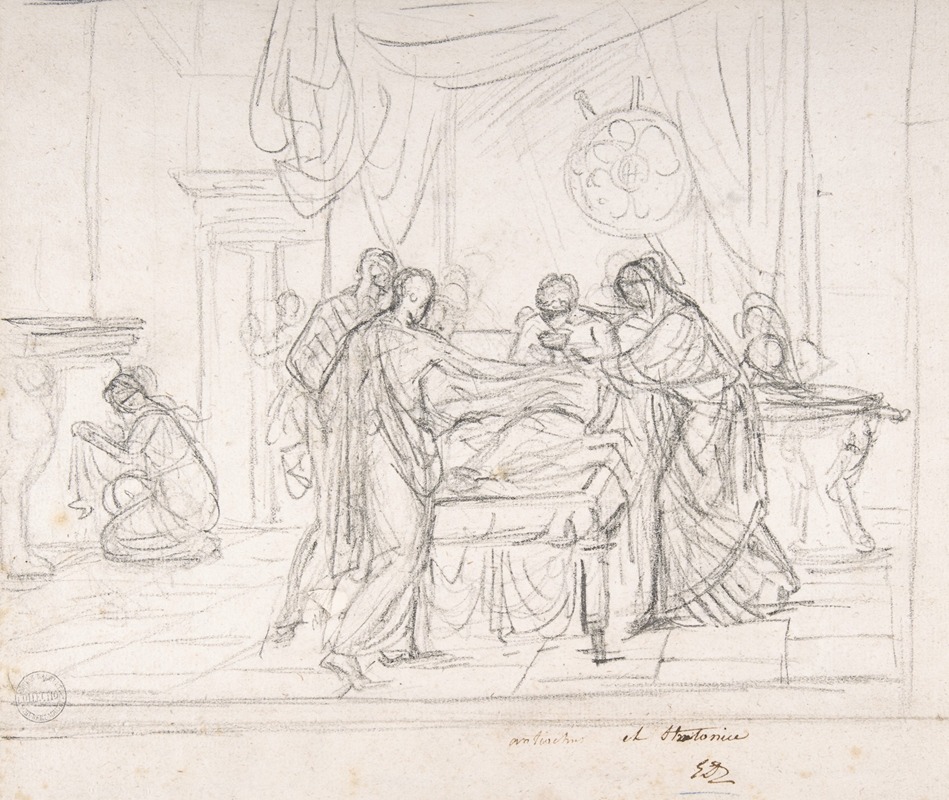 While "Scene from Ancient History; Cup Offered to an Invalid" may not be as well-known as some of David's later works, it remains an important piece in understanding the evolution of his artistic style. It demonstrates his early commitment to the principles of neoclassicism and his interest in exploring themes of virtue and morality through historical subjects.