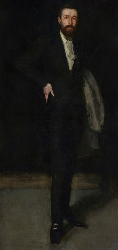 Whistler's portrait of Leyland is part of his series of "arrangements," where he emphasized the harmonious balance of color and form over the traditional focus on the subject's identity or narrative. In this particular work, Whistler employs a predominantly black palette, which is characteristic of his interest in tonal harmony and subtle gradations of color. The painting reflects Whistler's belief in "art for art's sake," a philosophy that prioritizes aesthetic experience over representational accuracy or storytelling.