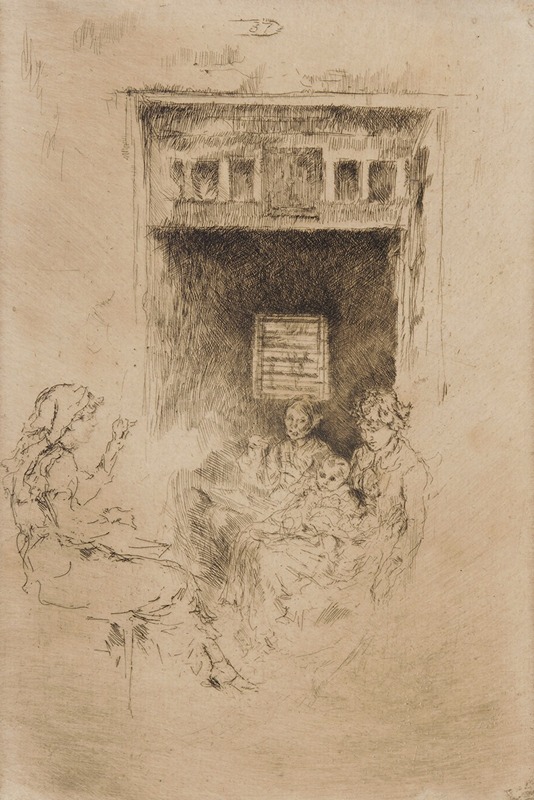 Throughout his career, Whistler was known for his belief in "art for art's sake," a philosophy that emphasized the importance of beauty and aesthetic experience over narrative or moral content. "Bead Stringers" aligns with this philosophy, as it does not convey a specific story or message but instead invites viewers to appreciate the visual harmony and the quiet dignity of the scene.