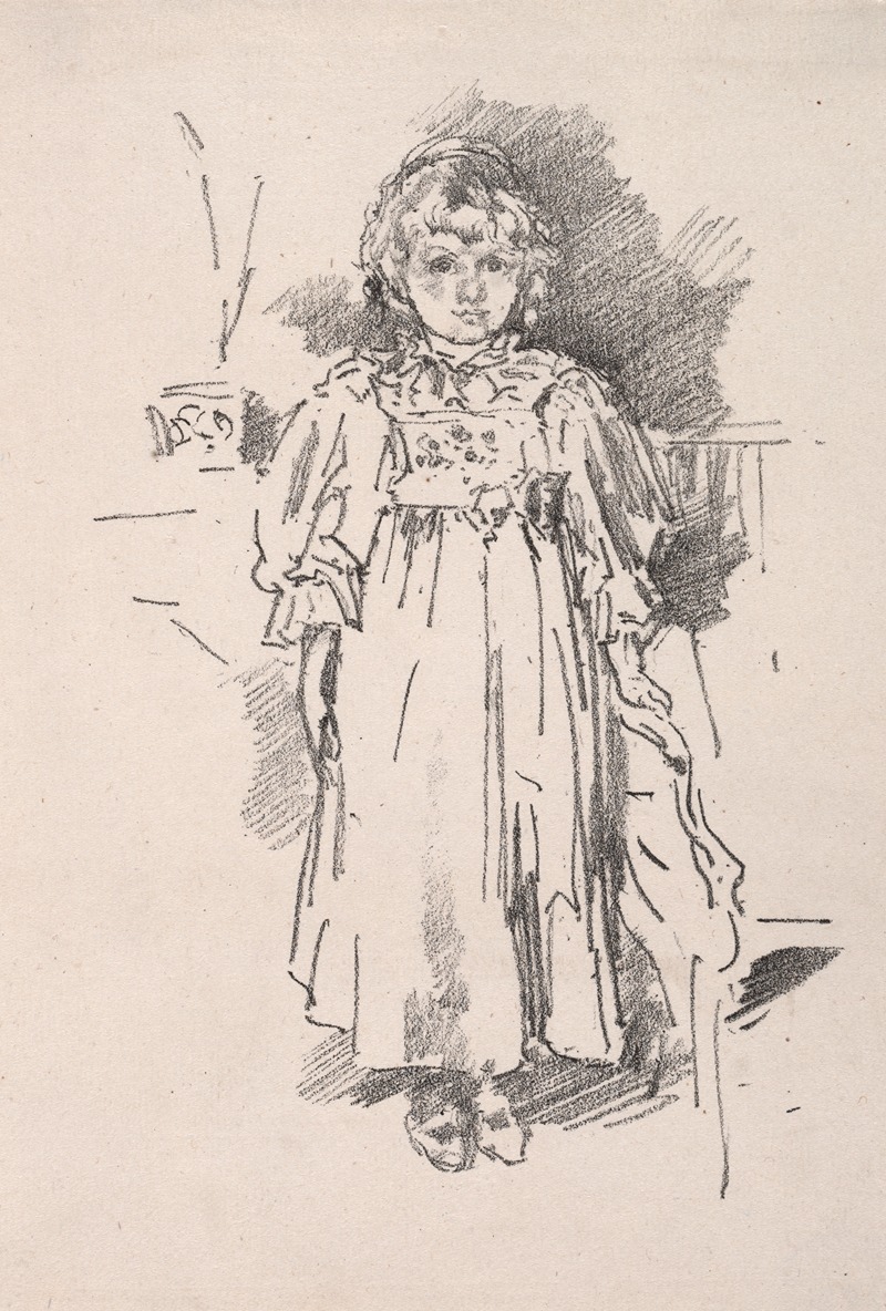 "Little Evelyn" is one of Whistler's lesser-known works. Unfortunately, there is limited information available about this specific painting. Whistler's oeuvre includes many portraits and figure studies, often focusing on capturing the essence and personality of his subjects with subtlety and grace. His portraits are known for their delicate tonal harmonies and the artist's ability to convey the character of the sitter through minimalistic compositions.