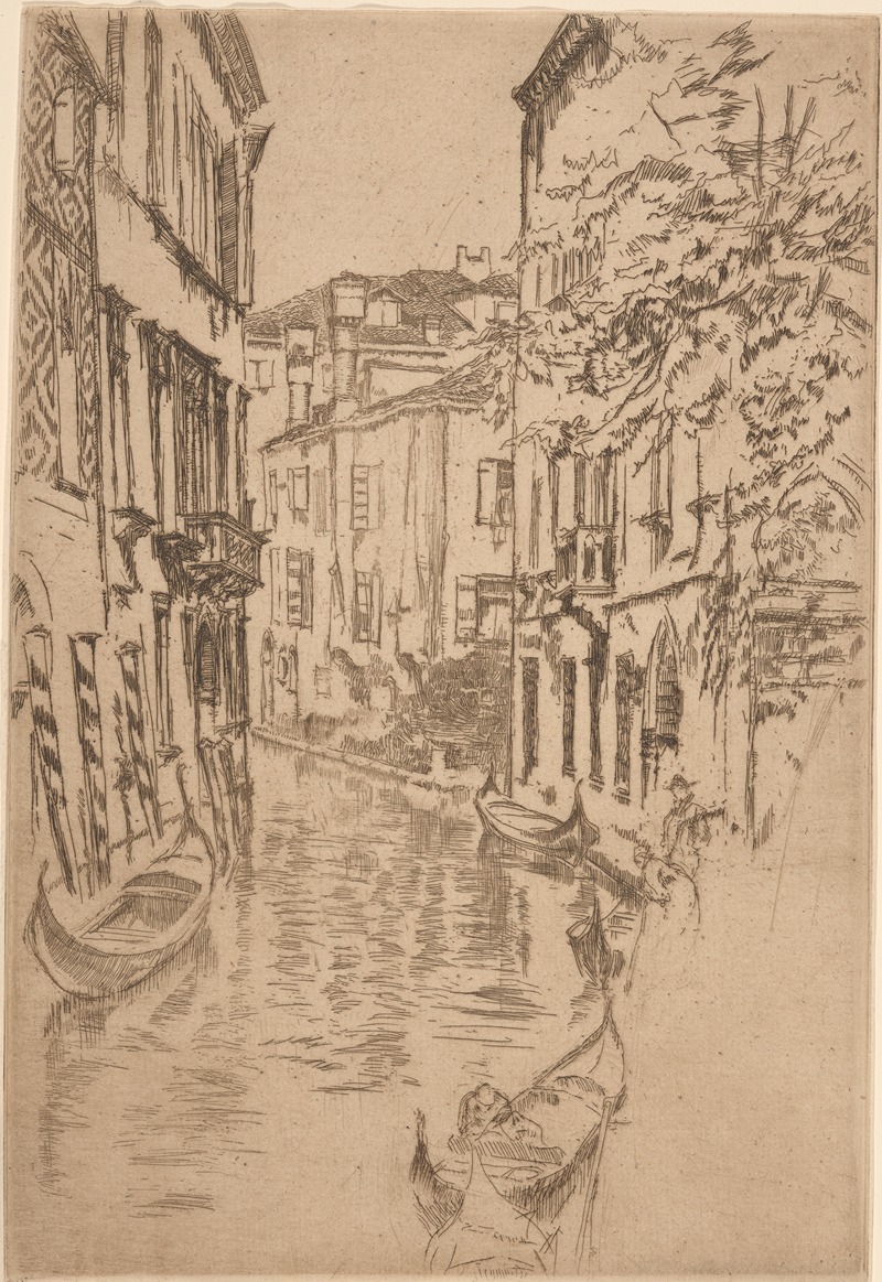 "Quiet Canal" is part of Whistler's Venice etchings, a series he created during his stay in Venice from 1879 to 1880. This period was particularly productive for Whistler, as he produced a substantial body of work that captured the unique beauty and ambiance of the Venetian landscape. The etchings from this series are celebrated for their delicate lines and the way they convey the tranquil and mysterious essence of Venice.