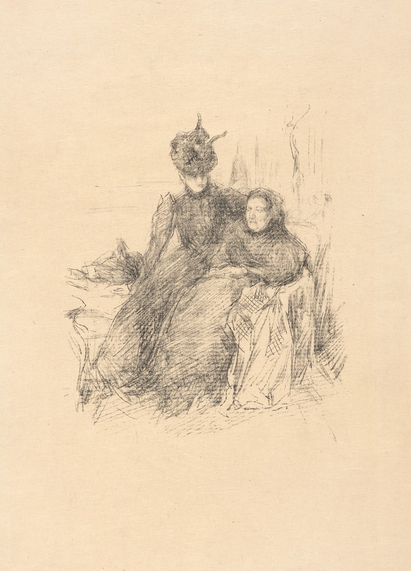 A hand-painted replica of James Abbott McNeill Whistler’s masterpiece Young lady in a hat, sitting with her arm around an older lady, meticulously crafted by professional artists to capture the true essence of the original. Each piece is created with museum-quality canvas and rare mineral pigments, carefully painted by experienced artists with delicate brushstrokes and rich, layered colors to perfectly recreate the texture of the original artwork. Unlike machine-printed reproductions, this hand-painted version brings the painting to life, infused with the artist’s emotions and skill in every stroke. Whether for personal collection or home decoration, it instantly elevates the artistic atmosphere of any space.