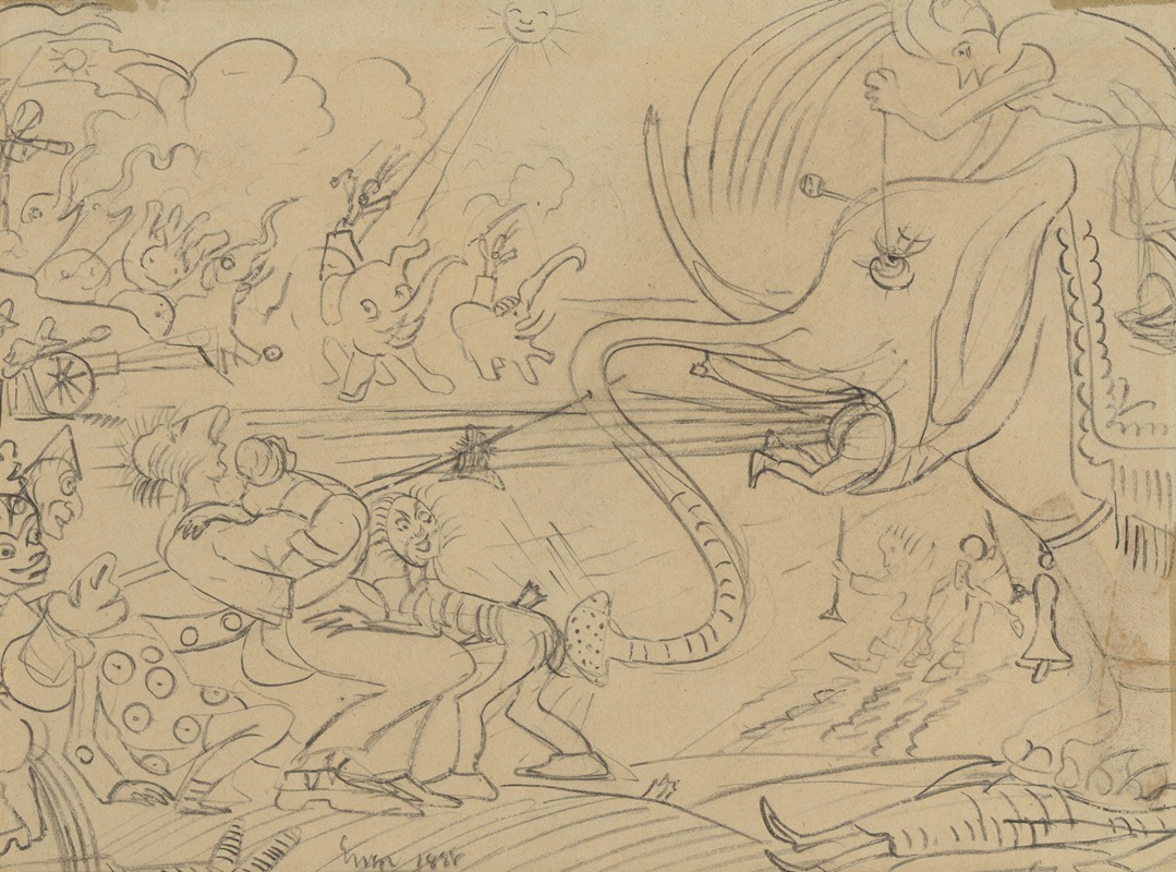 "The Joke of the Elephant" is a prime example of Ensor's distinctive approach to art. Created in 1879, this painting showcases his early experimentation with themes of absurdity and humor. The painting depicts an elephant in a whimsical and exaggerated manner, surrounded by a chaotic scene that includes various human figures and other elements. Ensor's use of bright, contrasting colors and dynamic composition draws the viewer's attention and evokes a sense of both amusement and unease.