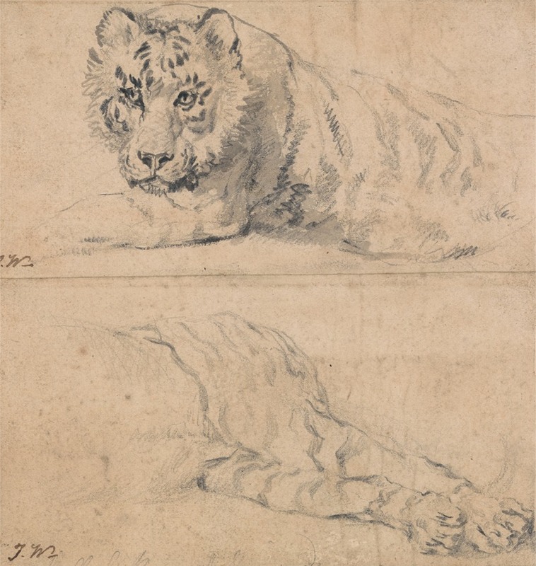 Two Studies of a Tiger; above; Head and Shoulders; below; Hindquarters