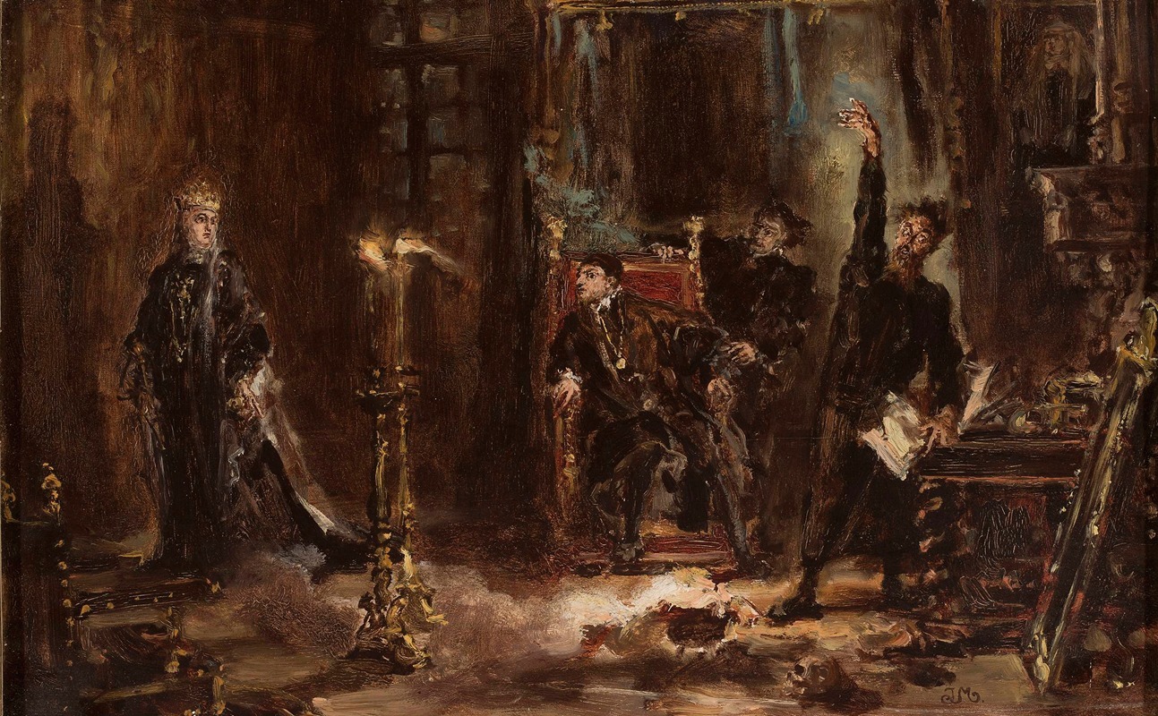Twardowski conjuring the spirit of Barbara for Sigismund Augustus, sketch