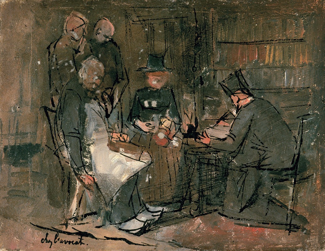 Given the lack of detailed records or scholarly analysis specifically addressing At the Lawyer’s Office, it is challenging to provide a comprehensive interpretation of the painting's themes or its place within Toorop's broader body of work. The title suggests a scene set in a legal or professional context, potentially depicting a moment of negotiation, consultation, or conflict resolution. However, without further documentation or analysis, any deeper interpretation would be speculative.