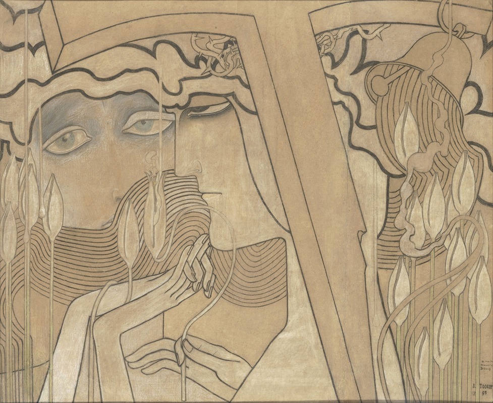 "Desire and Satisfaction" was created during a period when Toorop was deeply influenced by Symbolism, a movement that sought to express the metaphysical and the mystical through art. Symbolist artists often used symbolic imagery to convey emotions, ideas, and states of mind, and Toorop was no exception. His work frequently explored themes of spirituality, human emotion, and the dualities of existence.