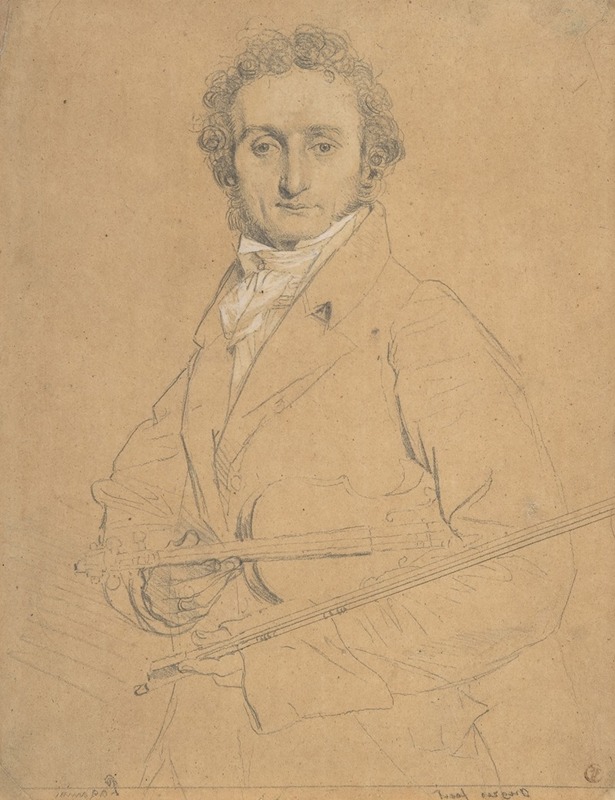 The portrait is a pencil drawing, which is a testament to Ingres' skill in capturing the essence of his subjects with minimalistic yet expressive lines. Ingres was adept at using pencil to convey texture, light, and shadow, and this drawing of Paganini is no exception. The artwork is noted for its detailed depiction of Paganini's facial features, particularly his intense gaze and distinctive profile, which were often remarked upon by his contemporaries.