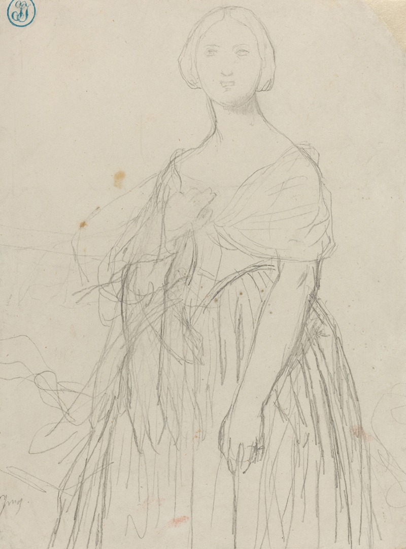 The sketch itself is a testament to Ingres' skill as a draftsman. His use of precise lines and careful shading demonstrates his mastery of the medium and his dedication to capturing the essence of his subject. The sketch not only serves as a preparatory study but also stands on its own as a work of art, showcasing Ingres' ability to convey character and elegance with minimal means.