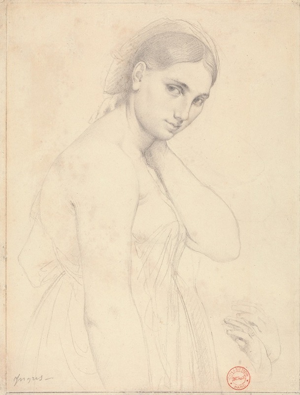 "Study for ‘Raphael and the Fornarina’" is a drawing by the French Neoclassical artist Jean Auguste Dominique Ingres. This work is a preparatory study for a larger painting that Ingres intended to create, depicting the renowned Renaissance artist Raphael and his alleged lover, known as La Fornarina.