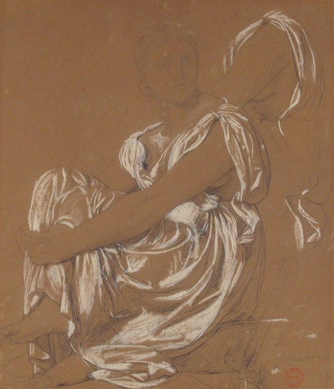 In summary, the "Study for the Figure of the Iliad in ‘The Apotheosis of Homer’" by Jean Auguste Dominique Ingres is a preparatory drawing that exemplifies the artist's Neoclassical style and his reverence for classical antiquity. It is an important piece that offers a glimpse into the meticulous process behind one of Ingres' most celebrated works, "The Apotheosis of Homer."