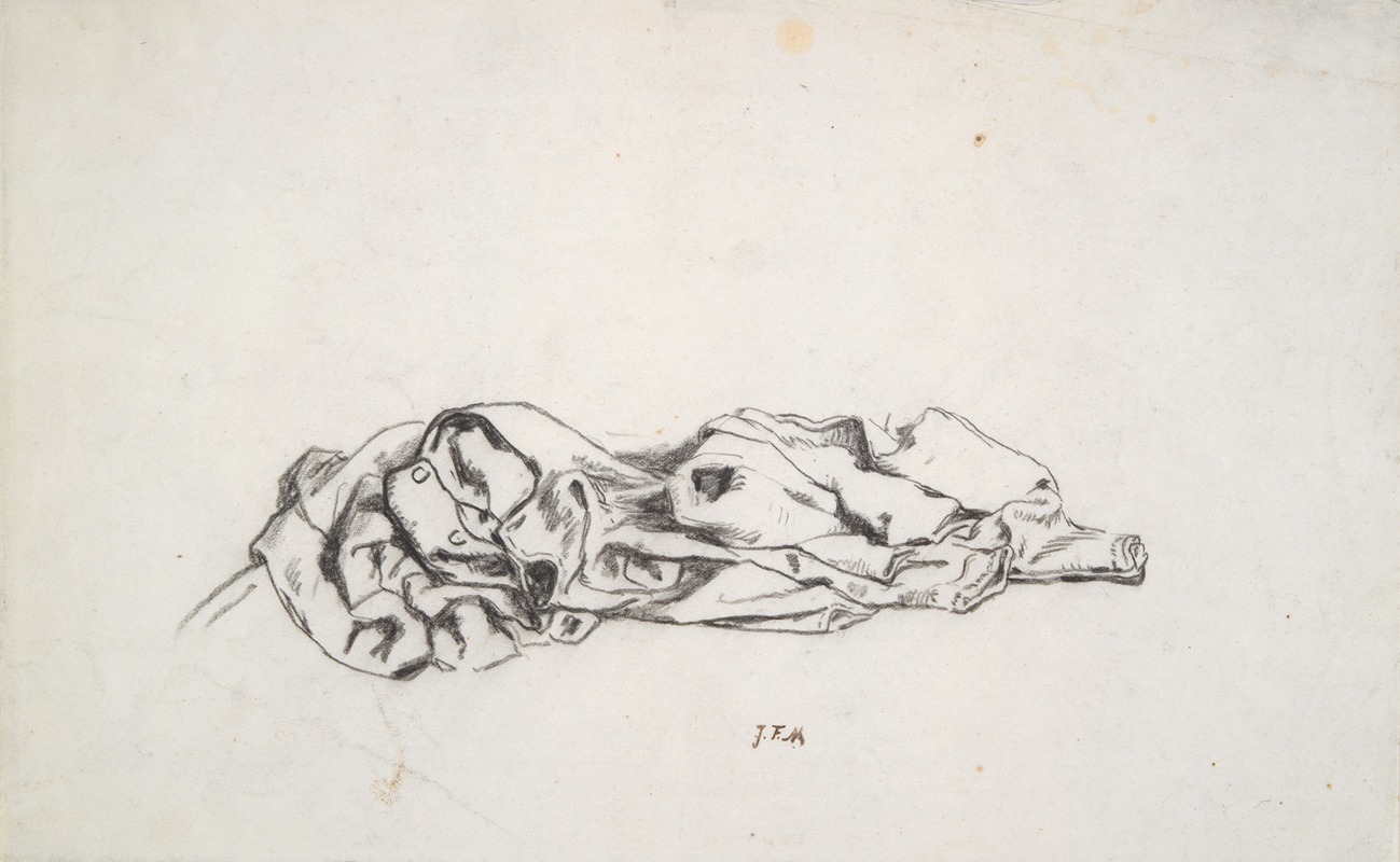 "Peasant Clothes, Study for ‘The Harvesters’" is a preparatory work for one of Millet's larger compositions, "The Harvesters." This study showcases Millet's meticulous attention to detail and his commitment to authenticity in depicting the attire and tools of peasants. The study likely served as a means for Millet to explore the textures, colors, and forms of the clothing worn by rural laborers, which were integral to the realism and emotional depth of his final compositions.