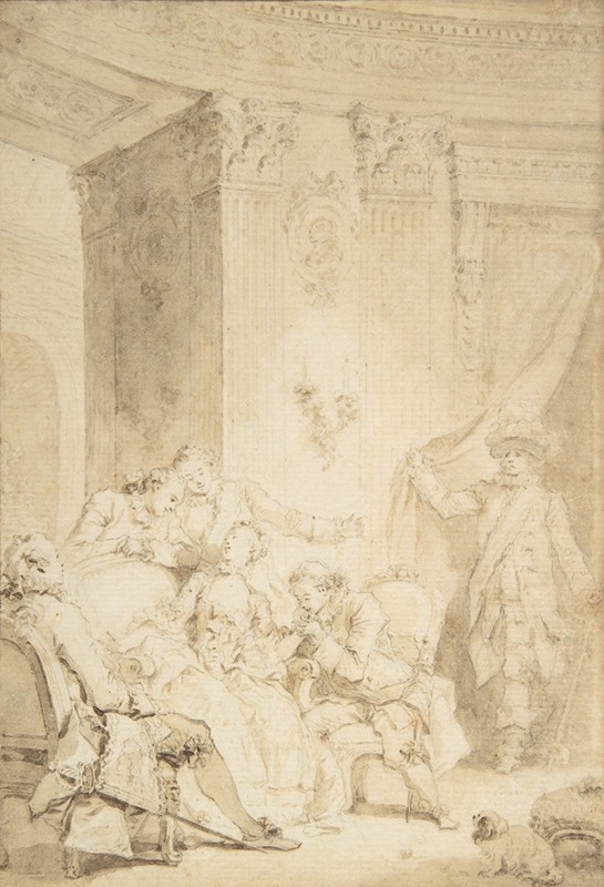 Jean-Honoré Fragonard's painting The Husband-Confessor is a work attributed to the celebrated French Rococo artist, known for his playful, romantic, and often sensual depictions of 18th-century life. Fragonard, active during the late Baroque and Rococo periods, was renowned for his mastery of light, color, and dynamic compositions, which are evident in many of his works.