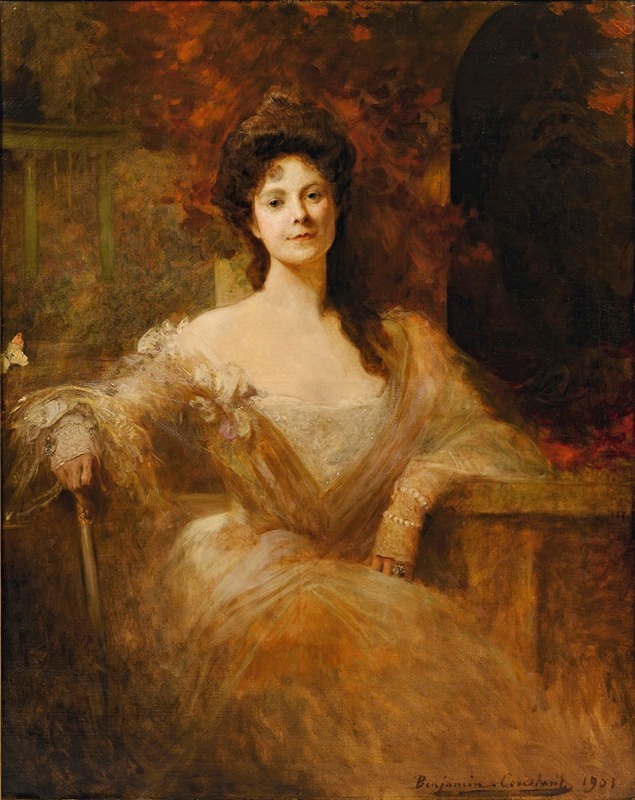 In summary, Jean-Joseph-Benjamin Constant's "Portrait of An Elegant Lady" is a testament to his skill as a portrait artist, capturing the elegance and refinement of his subjects with precision and artistry. Although detailed information about this specific painting is scarce, it remains a part of Constant's broader oeuvre, which has left a lasting impact on the art world.