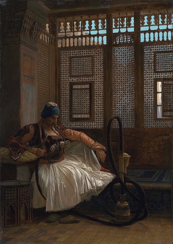 Arnaut fumant portrays an "Arnaut," a term historically used to describe Albanian mercenaries who served in the Ottoman Empire's military forces. The figure in the painting is depicted in traditional Ottoman-Albanian attire, seated and smoking a long pipe, a common motif in Orientalist art that often emphasized leisure and exoticism. Gérôme's rendering of the Arnaut's clothing and accessories demonstrates his commitment to ethnographic accuracy, a hallmark of his work. The intricate details of the costume, including the embroidered vest, sash, and fez, reflect Gérôme's careful study of the region's material culture.