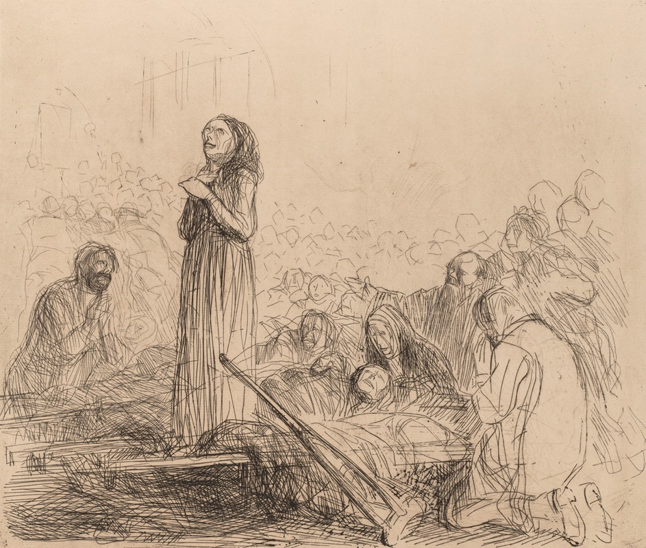 The painting is characterized by Forain's signature style, which combines elements of Impressionism with a more somber and introspective tone. His use of light and shadow, along with a muted color palette, creates a contemplative atmosphere that invites viewers to engage with the spiritual narrative. Forain's brushwork is both expressive and precise, capturing the emotional intensity of the scene while maintaining a sense of realism.