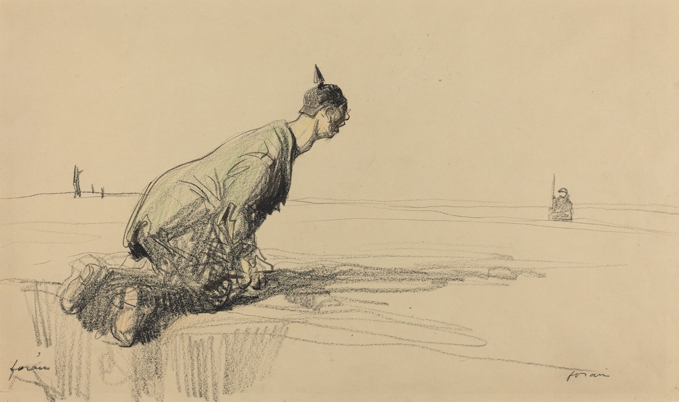 This particular painting is notable for its stark and poignant portrayal of war. It reflects Forain's ability to capture the emotional and moral weight of the subject matter. The artwork is characterized by its loose brushwork and muted color palette, which contribute to the somber atmosphere. The composition and figures in the painting convey a sense of urgency and gravity, aligning with the broader themes of sacrifice and the futility of war that were prevalent in Forain's wartime works.