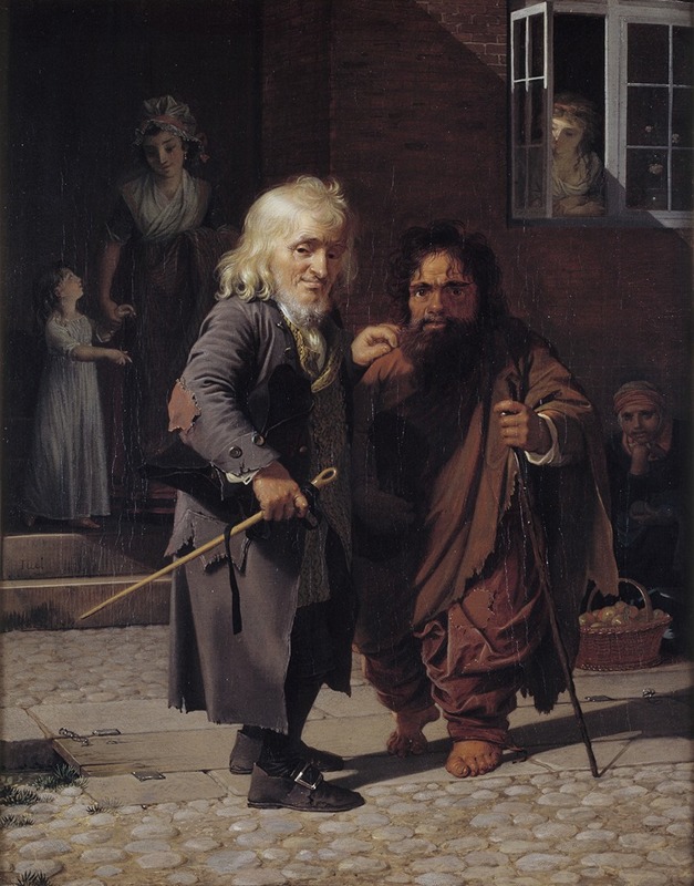 A hand-painted replica of Jens Juel’s masterpiece Two Dwarfs; Obligeert, a Jewish pigtail-ribbon Vendor, beside the Roman Dwarf Bajocco in one of the Streets of Copenhagen, meticulously crafted by professional artists to capture the true essence of the original. Each piece is created with museum-quality canvas and rare mineral pigments, carefully painted by experienced artists with delicate brushstrokes and rich, layered colors to perfectly recreate the texture of the original artwork. Unlike machine-printed reproductions, this hand-painted version brings the painting to life, infused with the artist’s emotions and skill in every stroke. Whether for personal collection or home decoration, it instantly elevates the artistic atmosphere of any space.