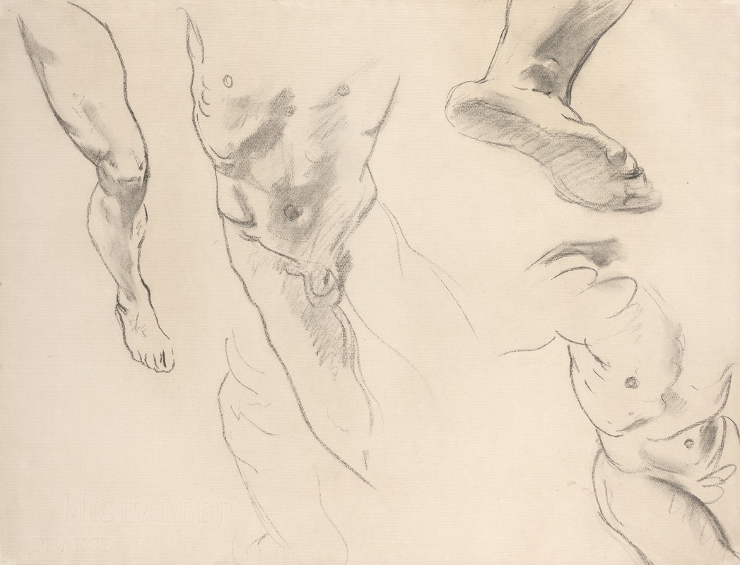 Sargent's figure studies, including "Figure Studies of a Nude Youth," are characterized by their dynamic compositions and the artist's ability to capture the subtleties of light and shadow on the human form. These works reveal his fascination with the interplay of light and the way it defines and sculpts the body, a theme that recurs throughout his oeuvre.