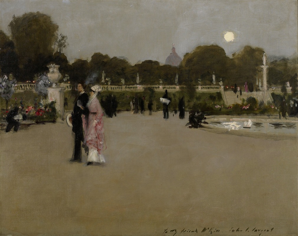 While specific details about the creation of "Luxembourg Gardens at Twilight" are not widely documented, it is consistent with Sargent's interest in capturing the essence of his surroundings, whether in portraiture or landscape. His ability to convey mood and atmosphere through his paintings has cemented his reputation as one of the leading artists of his time.